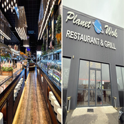 Planet Wok offre un buffet à volonté de style wok. Les clients choisissent leurs ingrédients et les cuisiniers les préparent sur le feu.